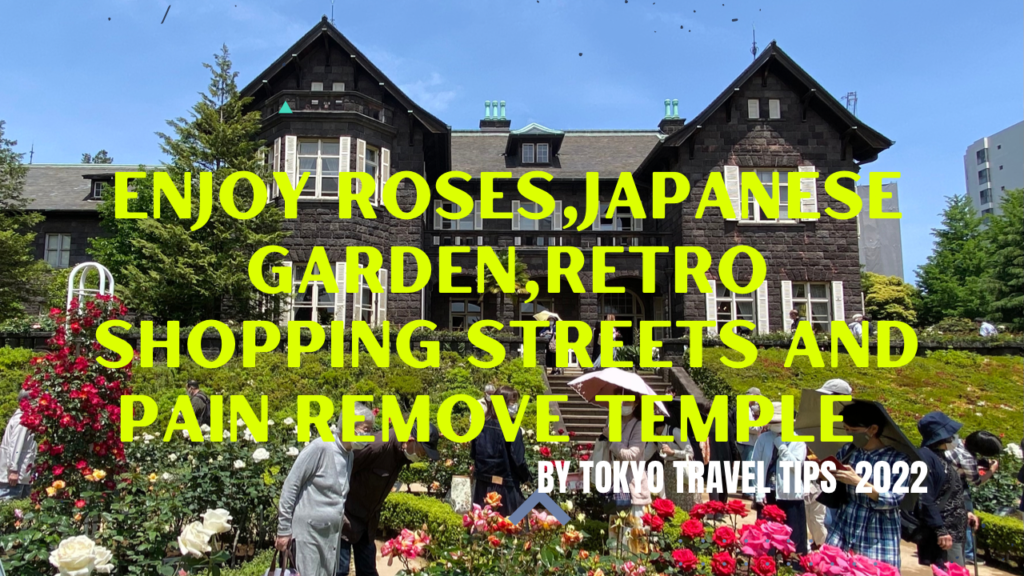 Tokyo city hiking , roses, Japanese garden and pain remove temple!